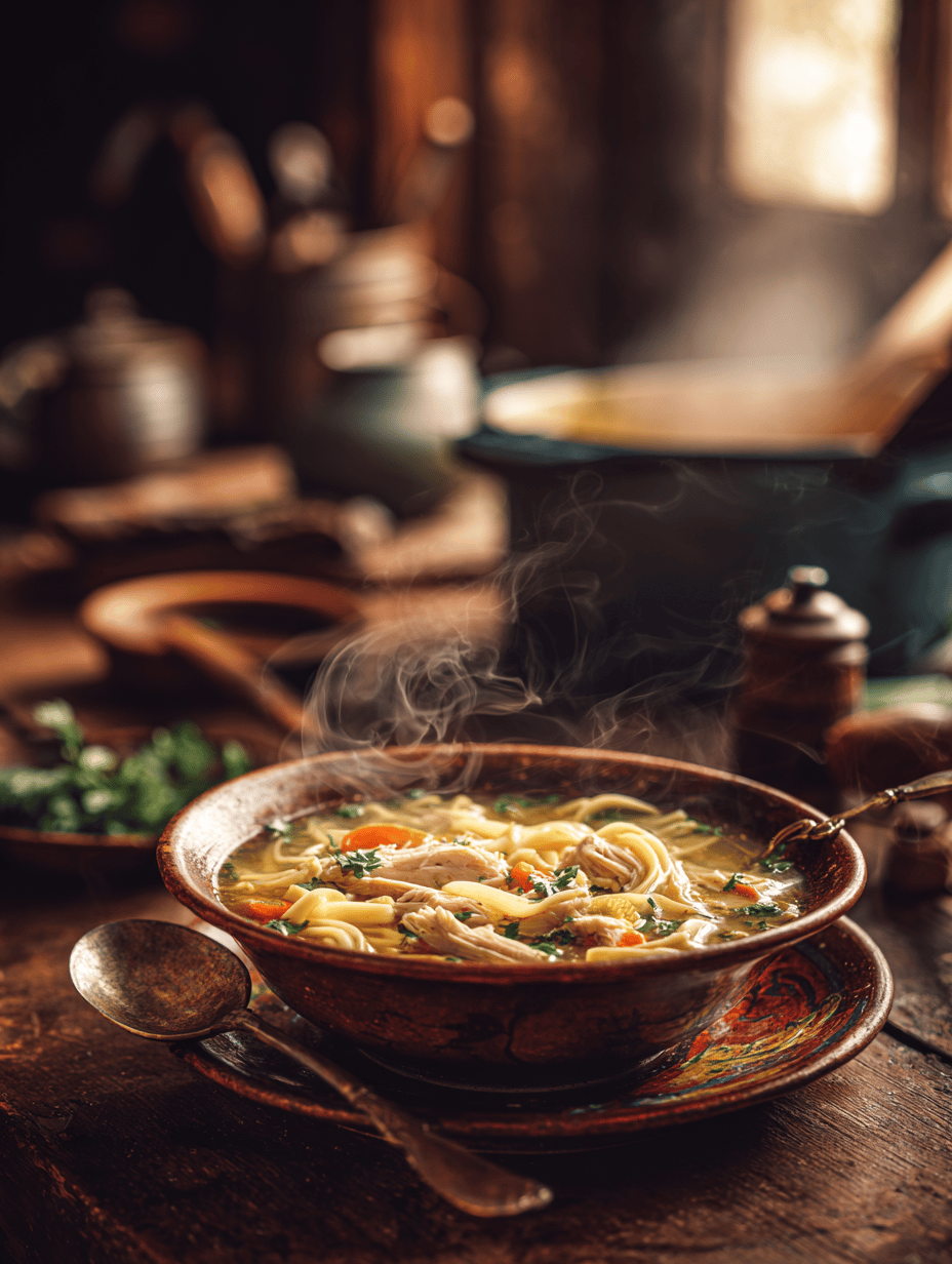 - Add the cooked noodles to the simmering soup. Season with salt and pepper, then squeeze in fresh lemon juice for brightness. Stir gently to combine.
