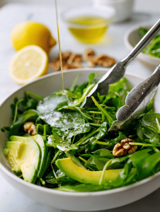 Step 3: Toss the greens with the dressing in a large bowl, ensuring everything is evenly coated.