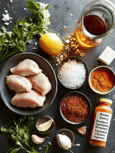 This recipe features juicy, tender chicken breasts marinated in a smoky, tangy blend of lemon, smoked paprika, garlic, and honey. Grilled to perfection, they develop a flavorful crust with a slight char, making them visually appealing and packed with bold flavors. The final result is a moist, smoky chicken with a beautiful golden exterior and a burst of fresh citrus.