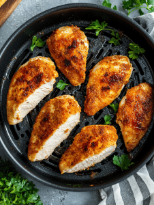 Step 5: Cook for 10-12 minutes, flipping halfway through. The chicken should turn golden and smell savory.
