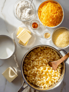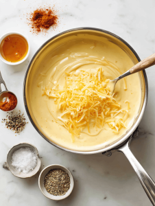 • Sharp cheddar: Adds that punch of cheesy nostalgia, with a bit of tang. Swap for smoked gouda for a richer, smoky flavor.: Gives the sauce its signature sharpness and meltability.