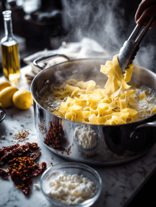 Step 1: Fill a large pot with water, salt generously, and bring to a rolling boil at 100°C (212°F).