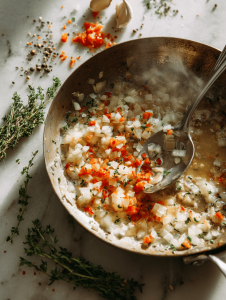 • Thyme: Fresh or dried, it’s aromatic and slightly minty—use fresh if possible.: Lends a herbal freshness that balances spice.