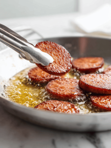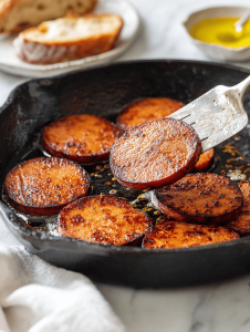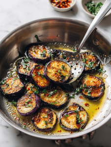 Step 3: Heat a generous layer of olive oil in a wide skillet over medium heat, about 180°C (356°F). Fry eggplant slices until golden and crispy, about 3-4 minutes per side.