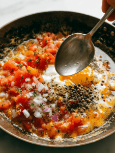 Step 5: Toss in chopped cherry tomatoes, cook until they burst and release juices—about 3-4 minutes.