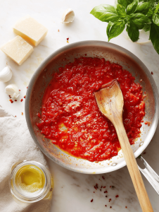 • Using canned tomatoes straight from the can without cooking down.? Sauce too bitter — add a pinch of sugar and simmer longer.