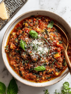 9. Finish with a drizzle of extra virgin olive oil and an extra sprinkle of basil for freshness. Serve hot and enjoy the bold, comforting flavors.